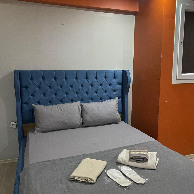 Oda 3, İzabel Rezidans’ın hem ekonomik hem de fonksiyonel çözümler sunduğu özel odalarından biridir. Daha sade ama modern dekorasyonu ile özellikle kısa süreli konaklamalar, iş seyahatleri veya bireysel geziler için mükemmel bir seçenektir. Kompakt yapısına rağmen ihtiyaç duyabileceğiniz tüm detayları barındırır. Yatak alanı, mini masa, TV ve kişisel banyo ile rahat, kullanışlı ve sıcak bir ortam sunar.